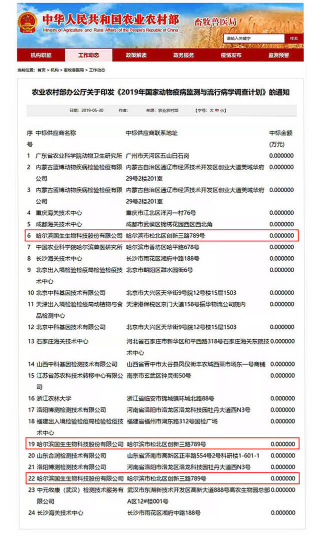 2019年成为国家首批动物疫病监测服务外包的合格供应商